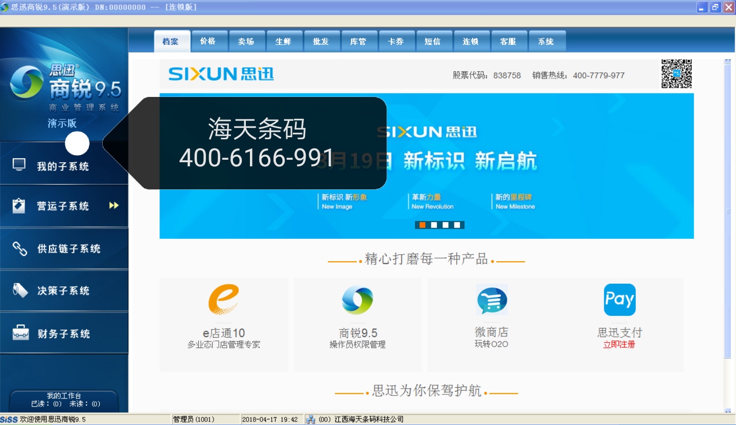 卖场:卖场管理是为营运管理定制的功能模块,是进行零售业务的后台管理基础。